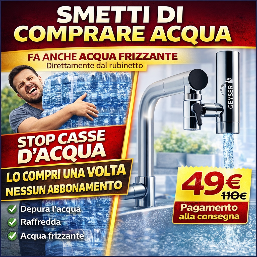 <p class=”sub”><strong>[Depura + Raffredda + Frizzante]</strong> AquaFizz™ trasforma l’acqua del rubinetto in acqua più pura, fresca e anche frizzante in pochi secondi. Si installa direttamente sul rubinetto senza idraulico e grazie al sistema di filtrazione avanzato migliora il gusto dell’acqua eliminando impurità e odori. Compatibile con la maggior parte dei rubinetti: lo monti in pochi secondi e lo usi subito, senza abbonamenti.</p>